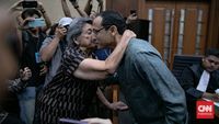 "Mungkin bisa ambil posisi jangan berdiri di situ pak, karena mengganggu kamera. Bisa menyesuaikan pak, bisa mundur. Nanti pada saat ditutup baru maju karena terganggu juga yang dari belakang, bisa menyesuaikan ya pak," lanjut hakim.