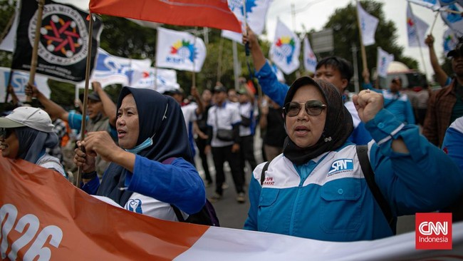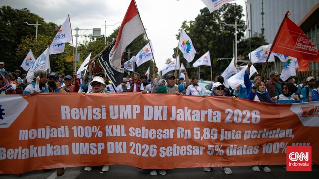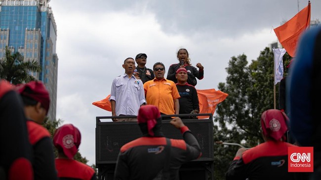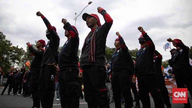 -- Buruh menggelar demo menyuarakan tuntutan terkait kebijakan upah di DKI Jakarta dan Jawa Barat.