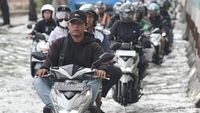 Sejumlah kendaraan roda dua mengalami mogok lantaran nekat menerobos banjir. Sejumlah pengendara lainnya memilih putar balik untuk menghindari banjir.