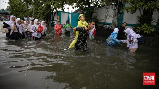 FOTO: Banjir Rendam Jalan Gunung Sahari, Lalu Lintas Lumpuh