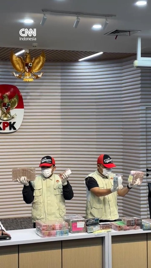 KPK menampilkan barang bukti uang tunai Rp2,6 miliar kasus dugaan pemerasan Bupati Pati Sudewo pada Selasa (20/1).