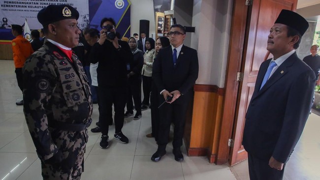Jakarta, CNN Indonesia -- Sakti Wahyu Trenggono pingsan saat memimpin upacara penghormatan dan pelepasan jenazah pegawai KKP di Jakarta Selatan, Minggu (25/1).