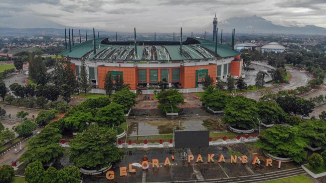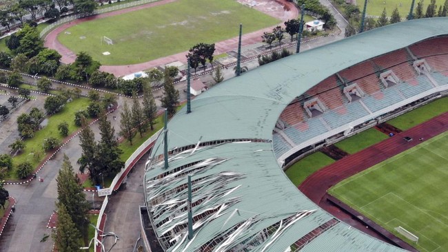 FOTO: Atap Stadion Pakansari Bogor Rusak Parah Diterjang Angin Kencang