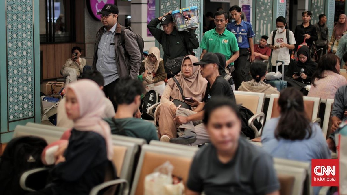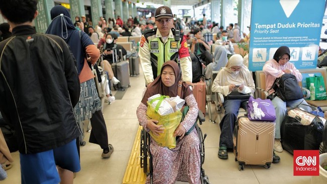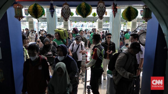 FOTO: Gelombang Awal Pemudik Mulai Banjiri Stasiun Pasar Senen