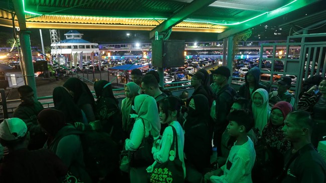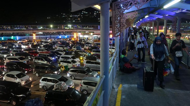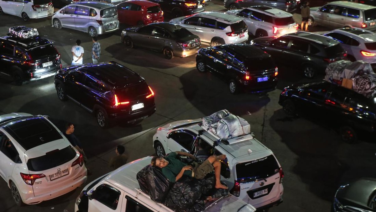 Meningkatnya volume kendaraan di Pelabuhan Merak pada masa puncak arus mudik lebaran 2026 membuat antrean kendaraan mengular.