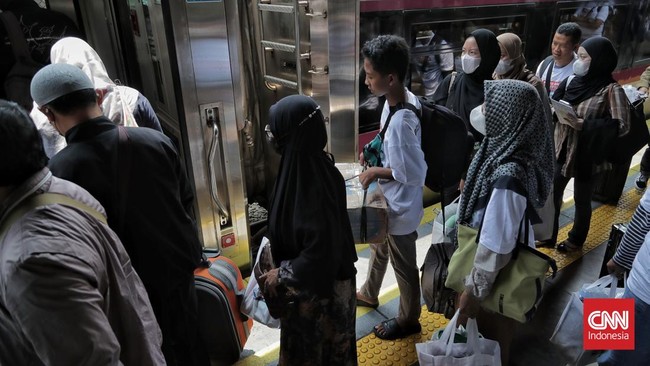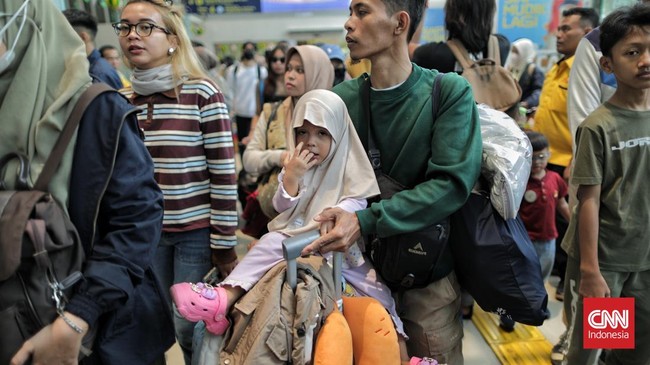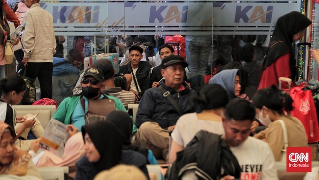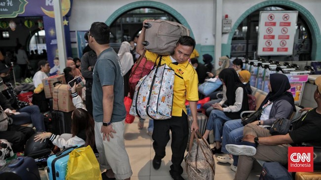 FOTO: Gelombang Pemudik Kepung Stasiun Pasar Senen Sejak Dini Hari