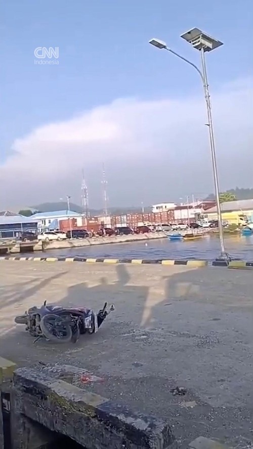 Rekaman tersebut memperlihatkan situasi mencekam saat guncangan terjadi di kawasan pelabuhan.