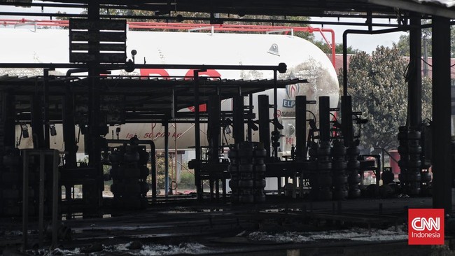 Sebuah stasiun pengisian bluk elpiji (SPBE) di Cimuning, Kota Bekasi, Jawa Barat terbakar pada Rabu (1/4).