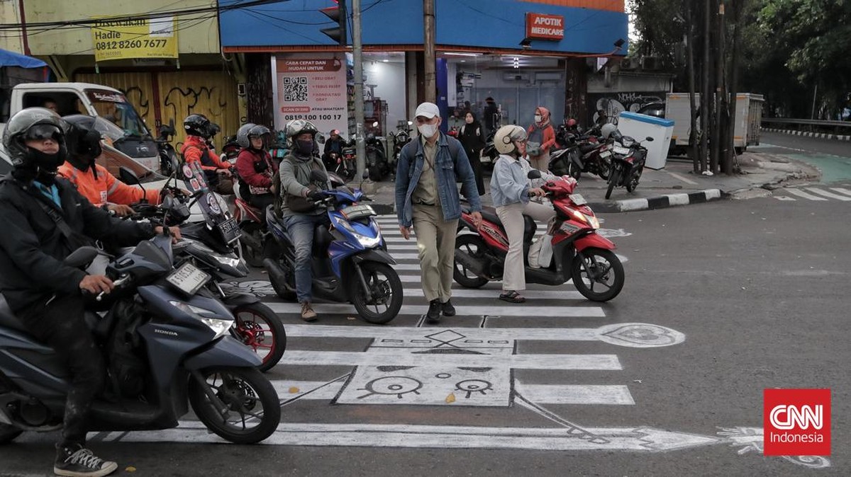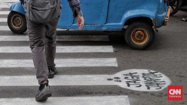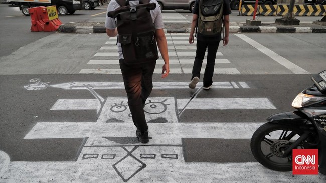 FOTO: Inisiatif Warga Perbaiki Zebra Cross di Jakarta