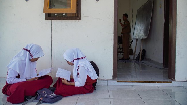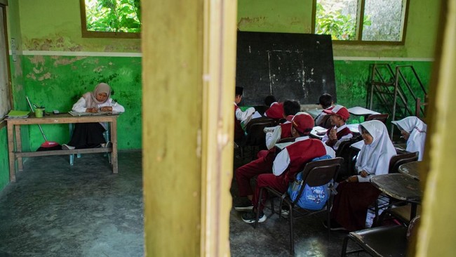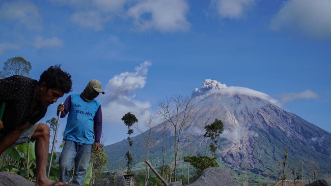 Aktivitas belajar mengajar tetap berlangsung di lereng Gunung Semeru meski erupsi kembali terjadi.