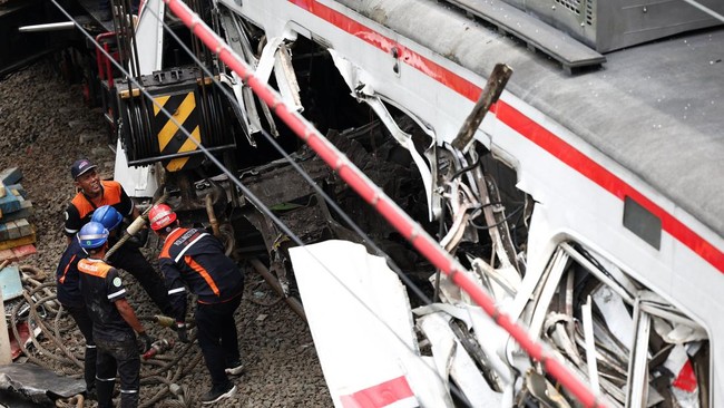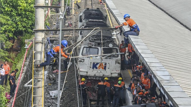 Gerbong lokomotif Argo Bromo yang sebelumnya masuk ke dalam rangkaian KRL dalam kecelakaan di Stasiun Bekasi Timur berhasil dipisahkan.