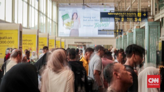 FOTO: Kepadatan Stasiun Pasar Senen Imbas Kecelakaan Kereta di Bekasi