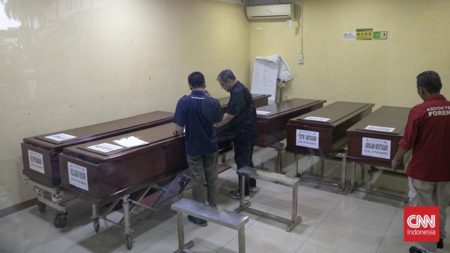 Proses identifikasi korban kecelakaan kereta di Bekasi Timur dilakukan di RS Polri Kramatjati, Jaktim. Korban yang sudah diidentifikasi diserahkan ke keluarga.