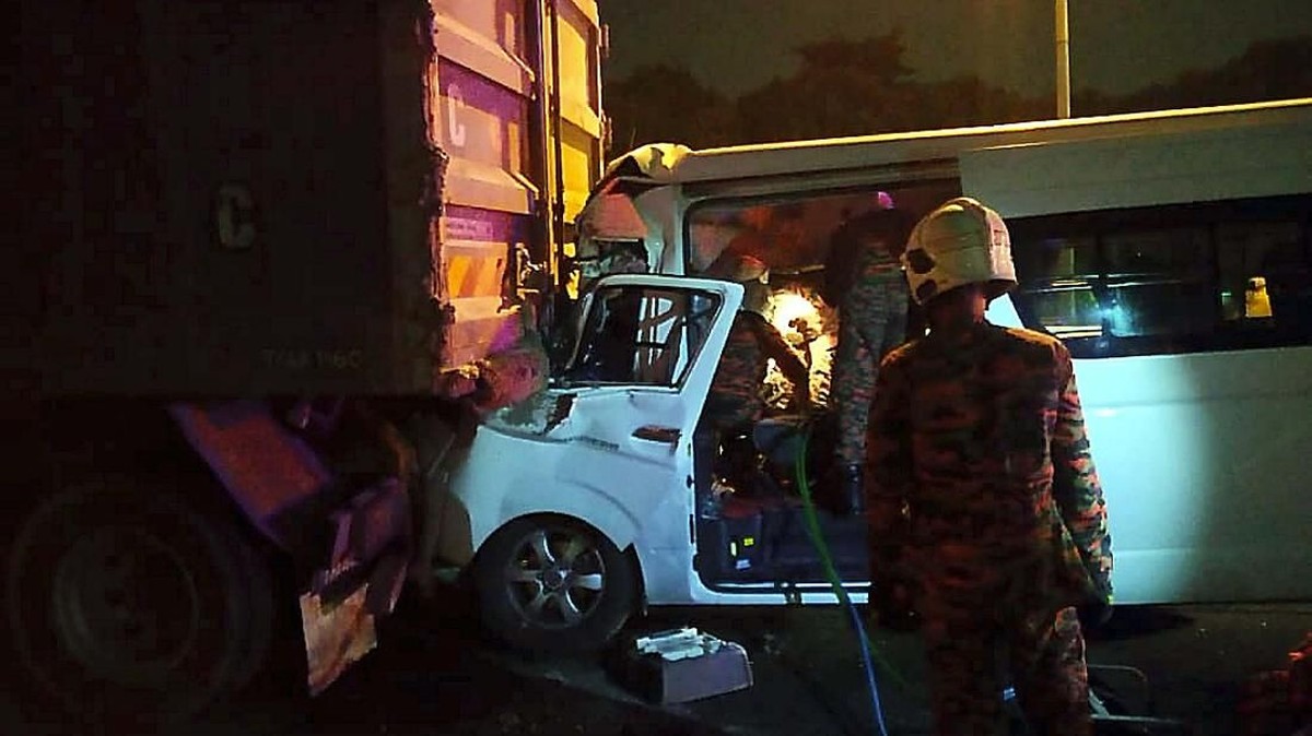 Mobil minibus yang ditumpangi Kento Momota rusak cukup parah usai mengalami kecelakaan hebat di Putrajaya, Malaysia, Senin (13/1).