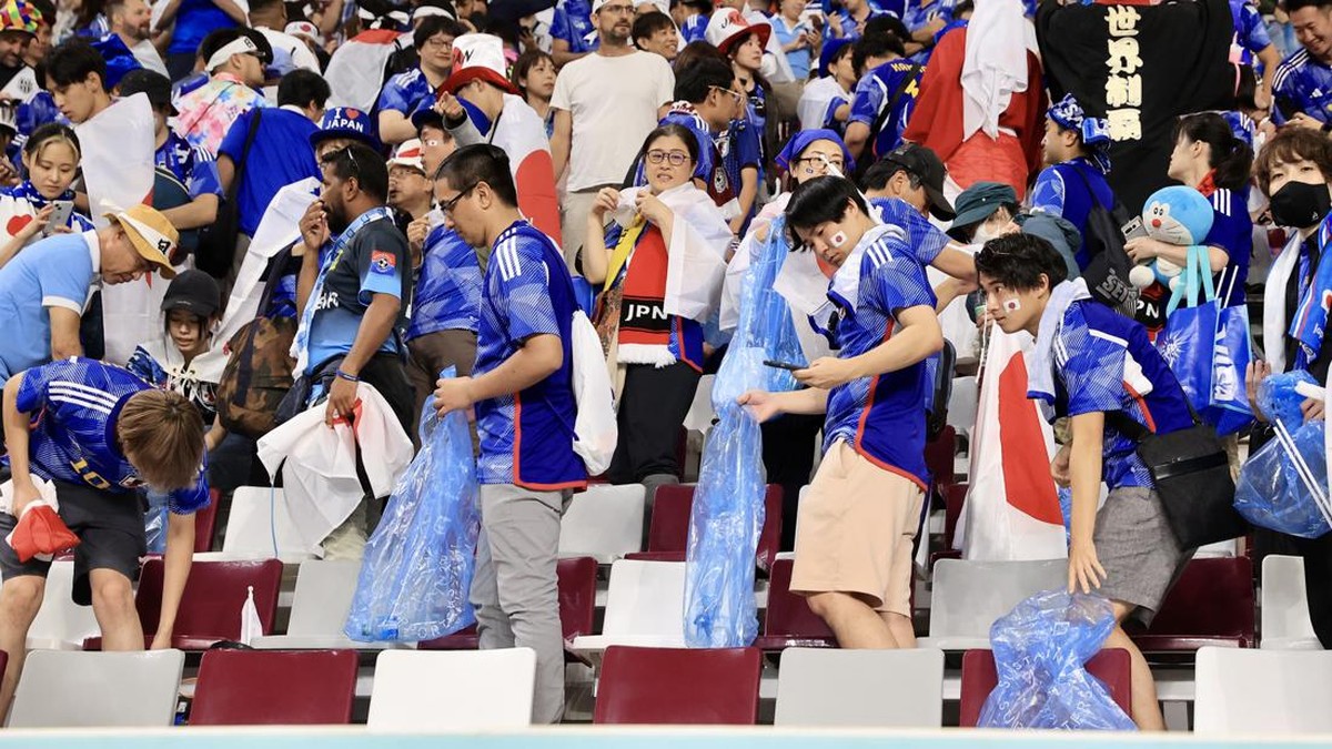 FOTO: Aksi Bersih-bersih Suporter Jepang Usai Tekuk Jerman