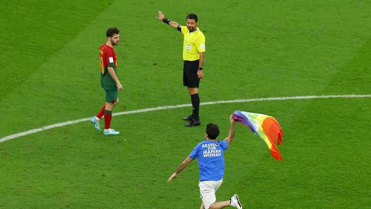 FOTO: Potret Penyusup Bendera LGBT di Laga Portugal vs Uruguay