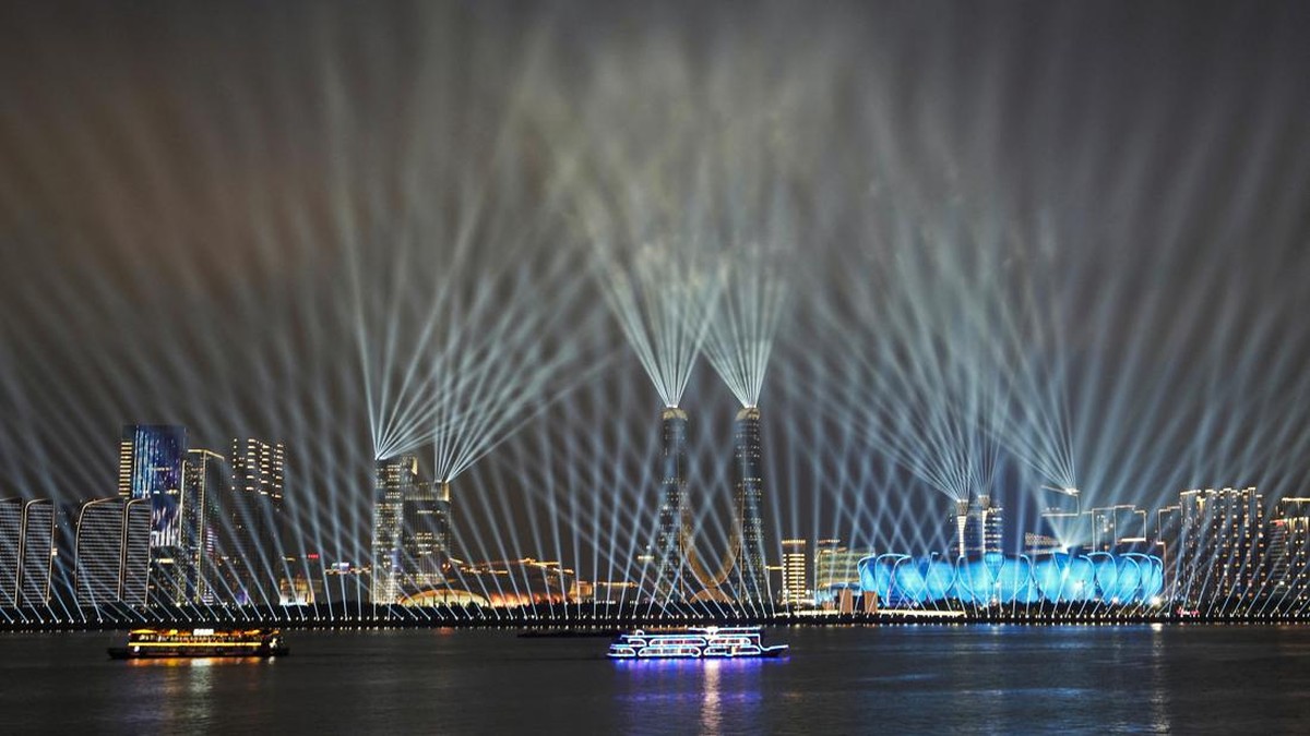 Hangzhou menunjukkan pesona kecantikannya lewat kerlip warna-warni cahaya lampu menjelang pembukaan Asian Games 2023 yang akan berlangsung, Sabtu (23/9).