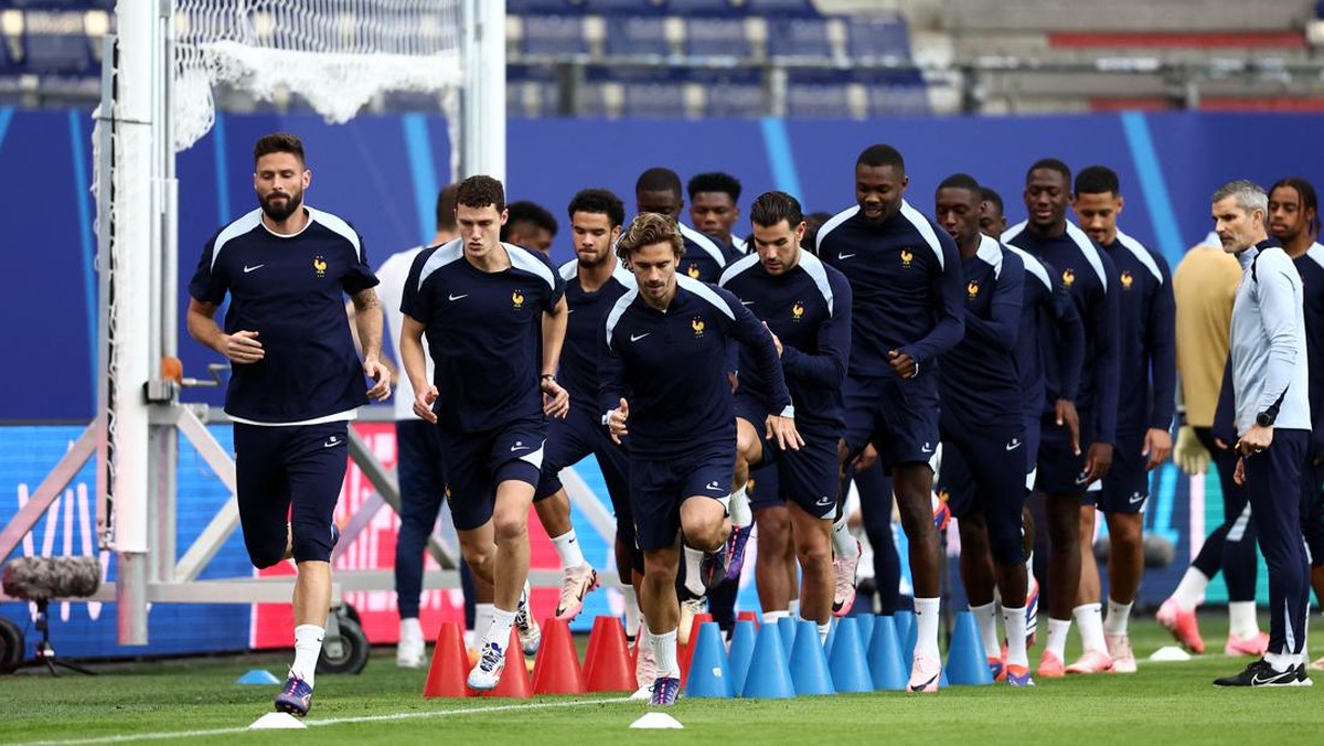 -- Dalam latihan menjelang laga perempat final Euro 2024, Kylian Mbappe terlihat tak lagi mengenakan topeng.