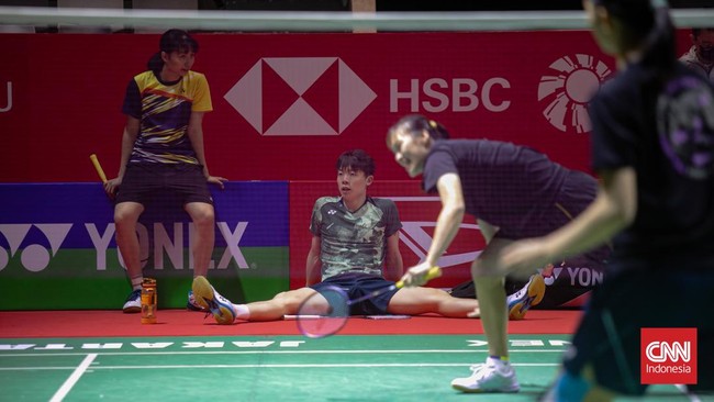 Jakarta, CNN Indonesia -- Sejumlah atlet bulutangkis peserta Daihatsu Indonesia Masters 2025 melakukan uji coba lapangan di Istora Senayan, Jakarta, Senin (20/1).