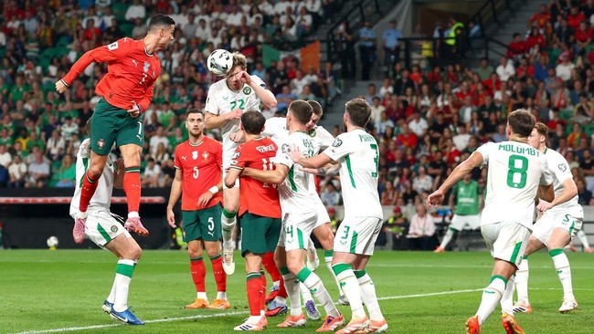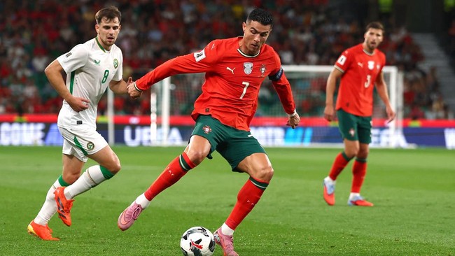 Cristiano Ronaldo gagal cetak gol penalti saat Portugal menjamu Republik Irlandia dalam lanjutan Kualifikasi Piala Dunia 2026, Minggu (12/10) dini hari WIB.