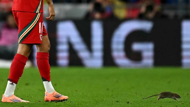 -- Seekor tikus masuk ke stadion dan membuat pertandingan kualifikasi Piala Dunia 2026 antara Wales dan Belgia terhenti.