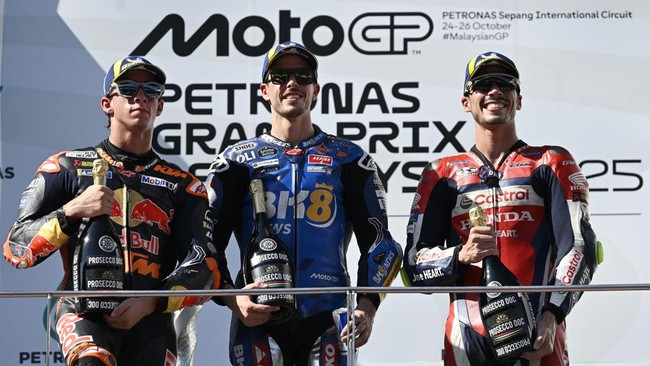Marc Marquez berhasil memenangi MotoGP Malaysia 2025 mengalahkan Pedro Acosta dan Joan Mir di Sirkuit Sepang, Minggu (26/10).