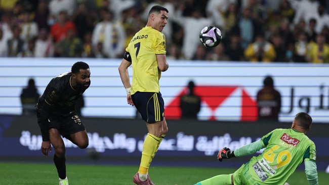Jakarta, CNN Indonesia -- Cristiano Ronaldo mencetak gol salto yang membawa Al Nassr menang 4-1 atas Al Khaleej dalam lanjutan Saudi Pro League, Minggu (23/11).