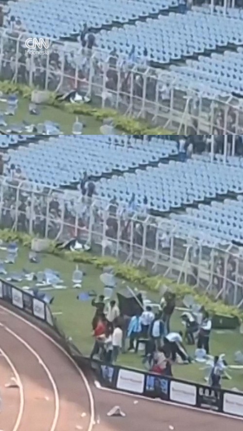 Ribuan penggemar yang memadati stadion meluapkan kekecewaan dengan melemparkan berbagai benda ke lapangan dan lintasan atletik. Beberapa di antaranya bahkan memanjat pagar pembatas.