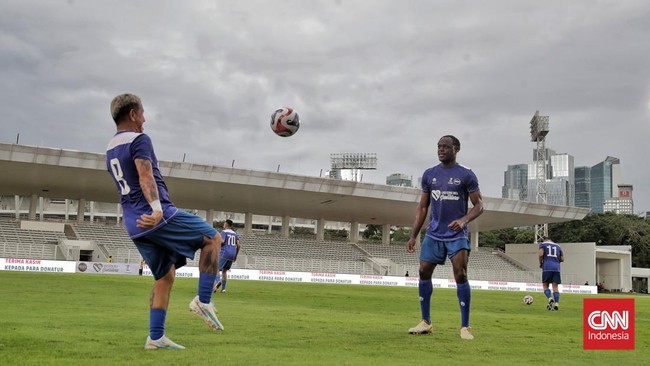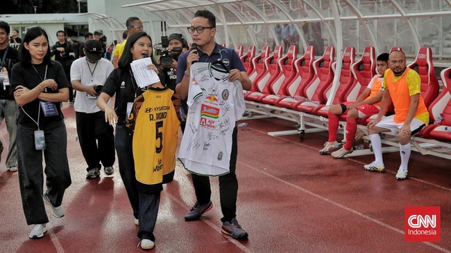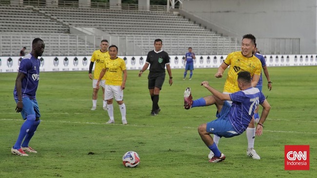 Jakarta, CNN Indonesia -- Legenda sepak bola Indonesia bersama para stakeholder ambil bagian dalam laga amal Sepak Bola untuk Sumatra di Stadion Madya, Jakarta, Jumat (19/12).