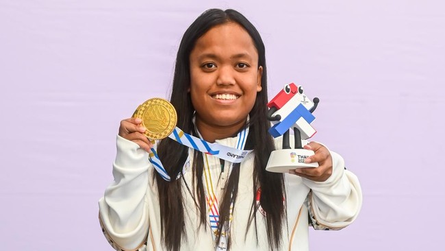 Atlet Indonesia Siti Alfiah, Harsanto Mutiara Cantik, dan Syuci Indriani meraih medali emas ASEAN Para Games 2025 (2026) di Thailand.