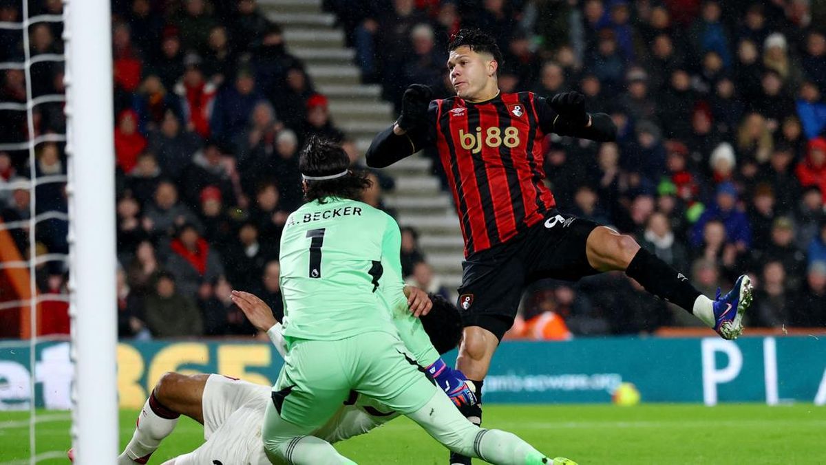 Bournemouth berhasil mengejutkan Liverpool di menit ke-26. Evanilson mencetak gol lewat tembakan keras dari jarak dekat usai menerima umpan dari Alex Scott. (Action Images via Reuters/Matthew Childs)