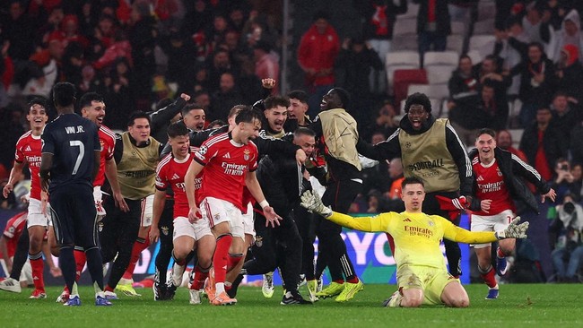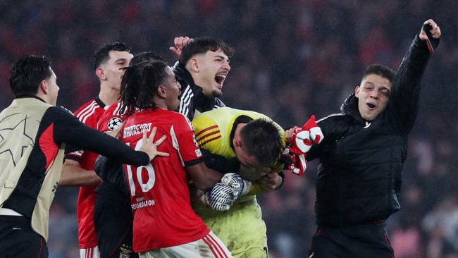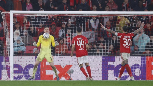 Kiper Anatoliy Trubin mencetak gol yang memastikan Benfica lolos ke babak playoff usai menang 4-2 atas Real Madrid di matchday terakhir Liga Champions.