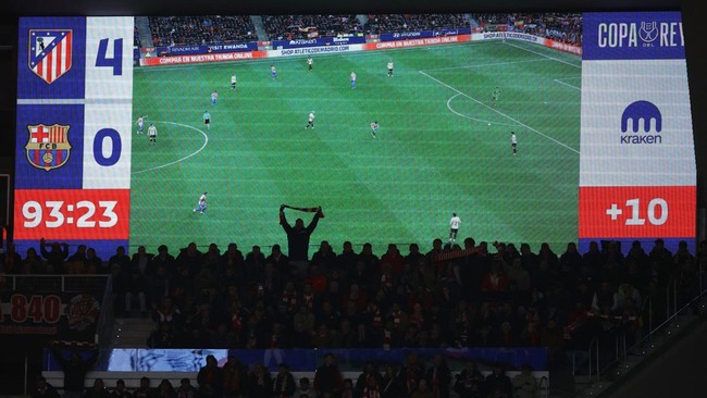 Atletico Madrid berhasil mengalahkan Barcelona dengan skor telak 4-0 pada leg pertama semifinal Copa del Rey. Berikut foto pilihan laga tersebut.