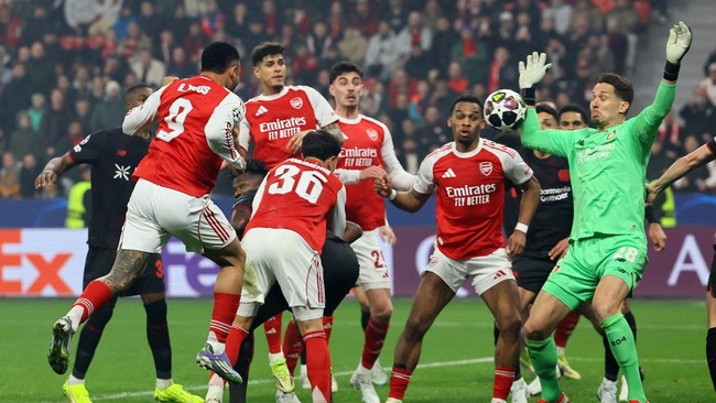 Arsenal ditahan Bayer Leverkusen 1-1 dalam leg pertama babak 16 besar Liga Champions di Stadion Bay Arena, Kamis (12/3) dini hari WIB.