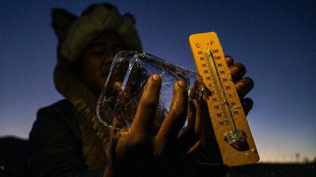 FOTO: Embun Beku di Hamparan Pasir Bromo