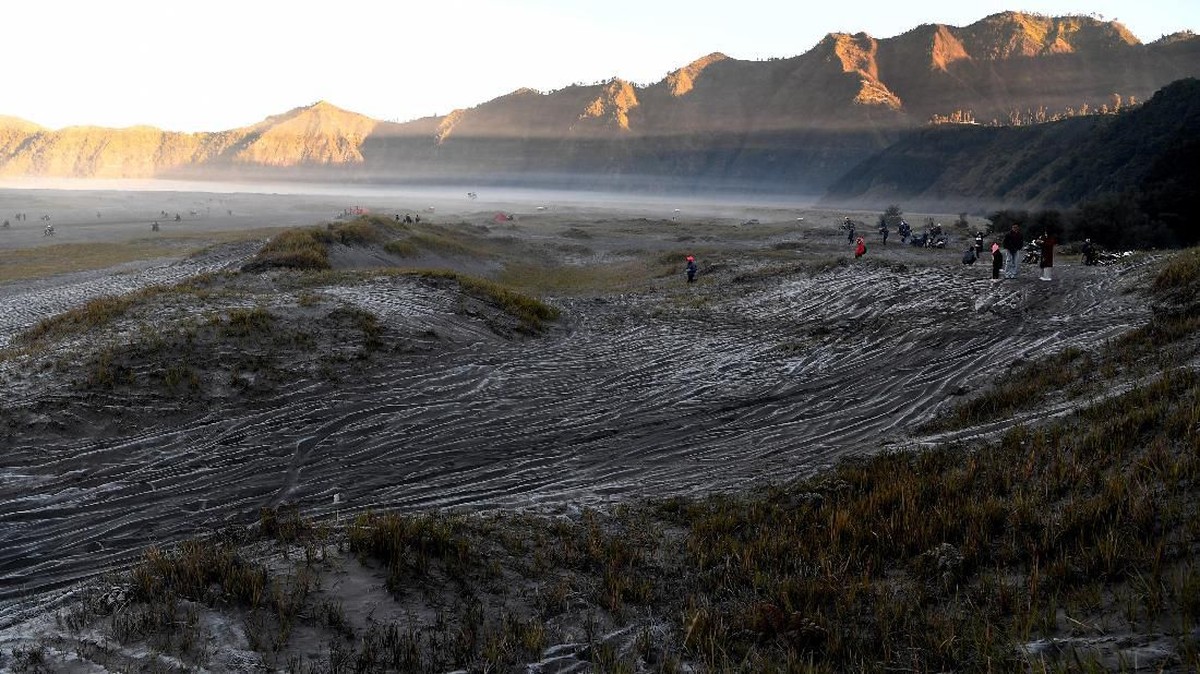 -- Fenomena embun beku juga terjadi di hamparan pasir Gunung Bromo dan menjadi pemandangan menarik bagi para pengunjung.