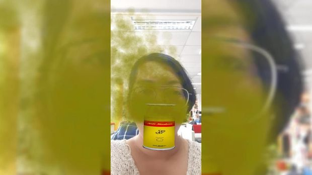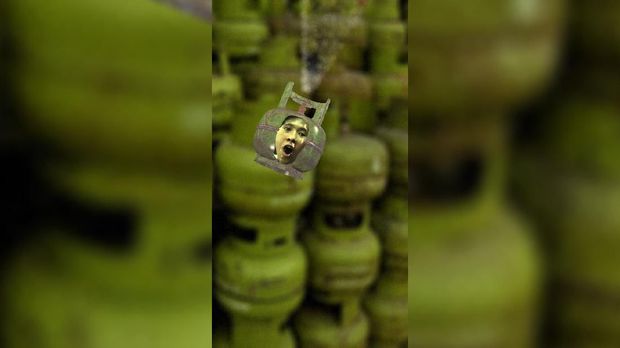 Filter ini menampilkan jajaran tabung gas 3 kg termasuk wajah pengguna. Jika pengguna menggeserkan kepala ke kanan dan kiri, tabung gas akan mengikuti sesuai dengan gerakan wajah.