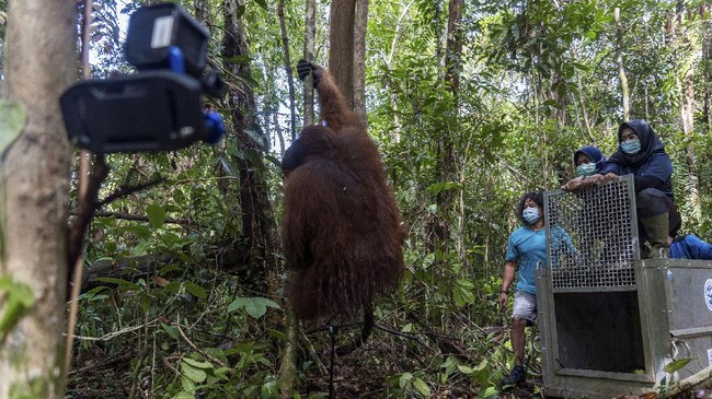 FOTO: Mengantar Jala Si Orang Utan Pulang ke Alam Liar