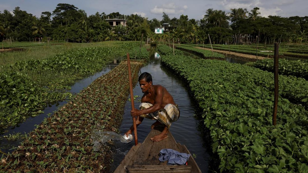 FOTO: Menanam di Perahu, Cara Bangladesh Bertani kala Banjir 'Abadi'