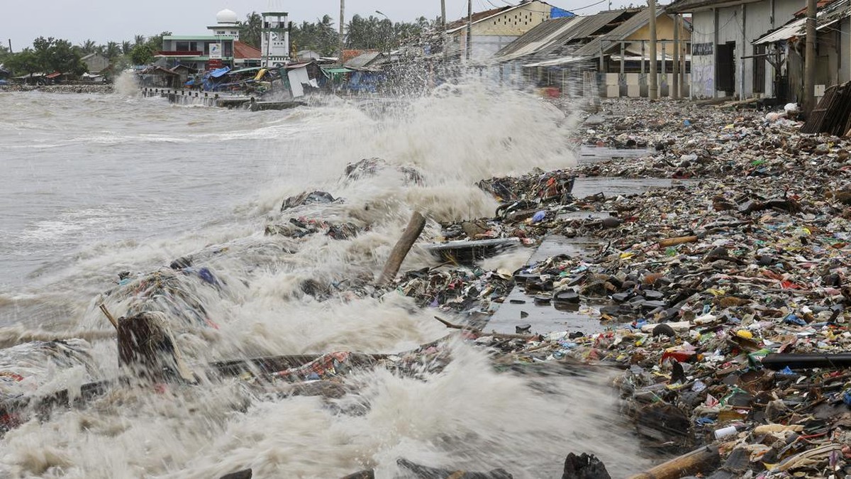 Bibit siklon tropis yang memicu gelombang tinggi dan cuaca ekstrem diduga jadi penyebab tumpukan sampah di Pantai Teluk, Pandeglang, Banten.