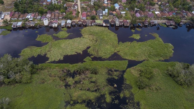 Puluhan rumah warga yang berada di Daerah Aliran Sungai (DAS) Kumpeh, Muaro Jambi, rusak akibat terjangan Rumput Kumpeh atau Rumput Siambang.