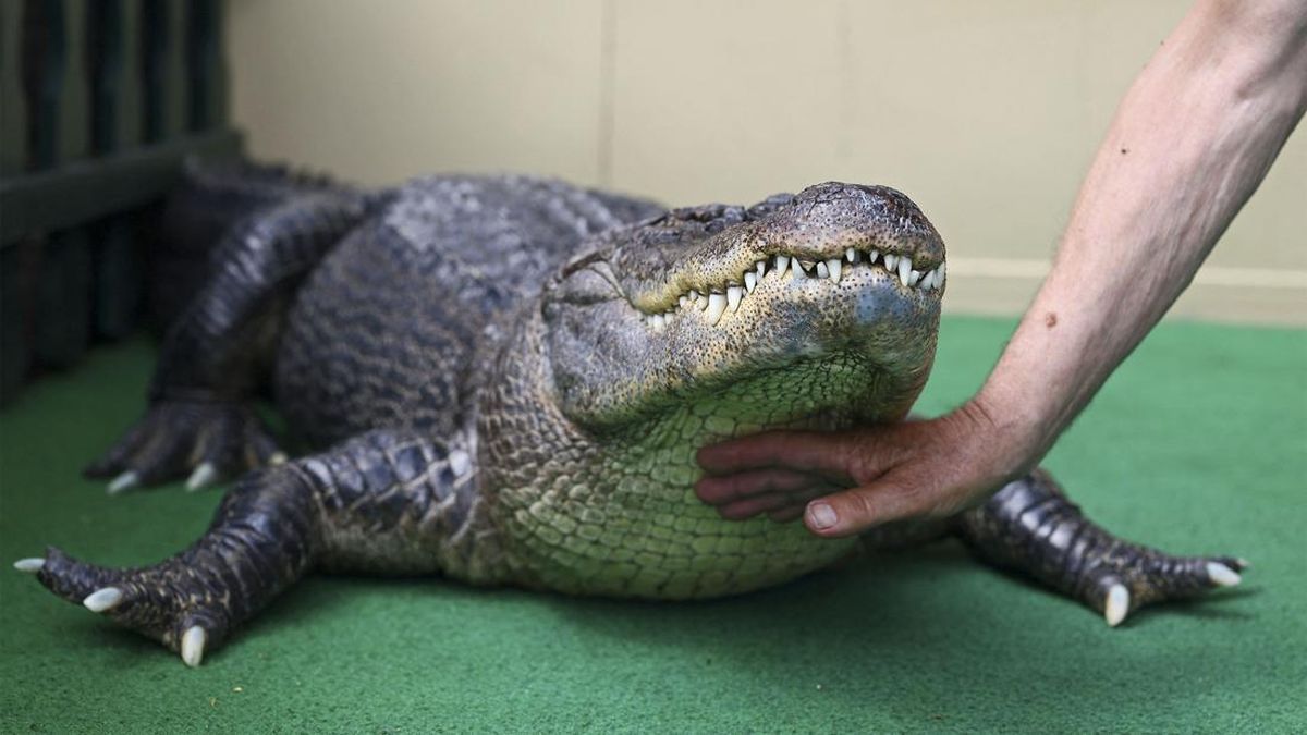 Cucu laki-laki Kaulis yang berusia tiga tahun juga diperbolehkan mengelus buaya tersebut-di bawah pengawasan. Pengunjung juga sesekali diperbolehkan melakukannya. (Foto: REUTERS/Lisi Niesner)