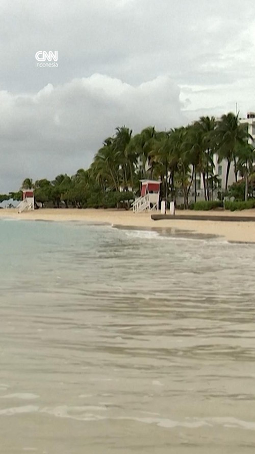 Pantai di Montego Bay, Jamaika, terlihat sepi pada Minggu (26/10) akibat Badai Melissa yang diperkirakan akan datang pada awal pekan ini.