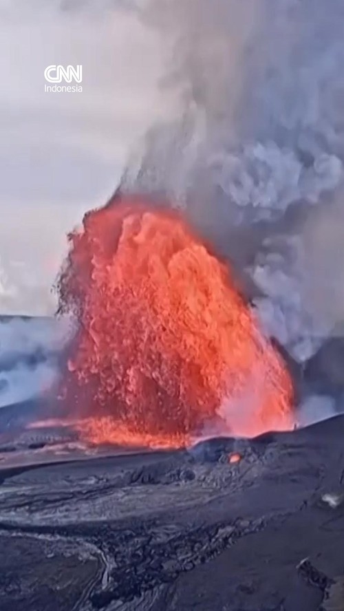 Rekaman menunjukkan lava dan abu menyembur dari gunung berapi Kilauea di Hawaii dari pagi hingga sore pada Sabtu (6/12).