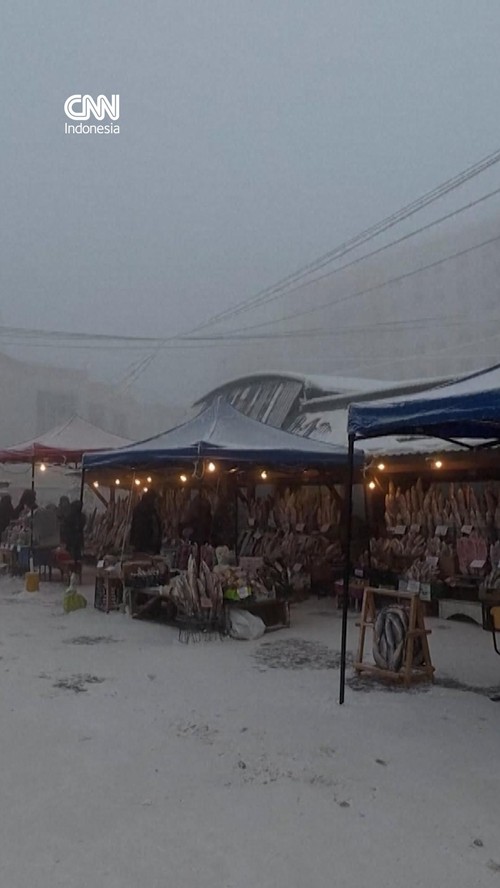 Meski diterpa suhu ekstrem, aktivitas transportasi umum, perdagangan, dan pekerjaan sehari-hari tetap berjalan normal di Yakutsk.