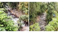 Dalam salah satu unggahan di X, rekaman video tersebut menunjukkan kondisi air sungai yang terputus dan masuk ke dalam tanah. Padahal, alirannya di hulu cukup deras, namun kering kerontang di bagian hilir.