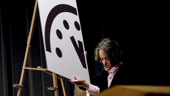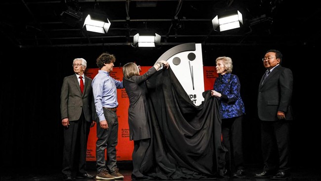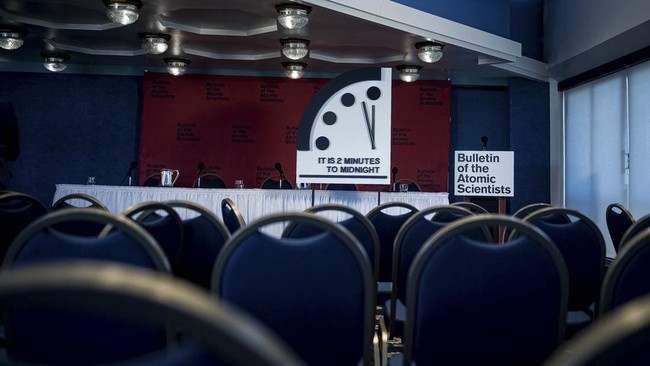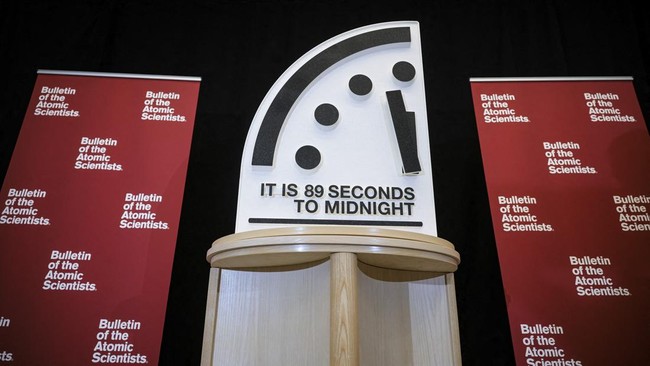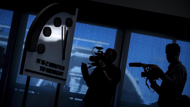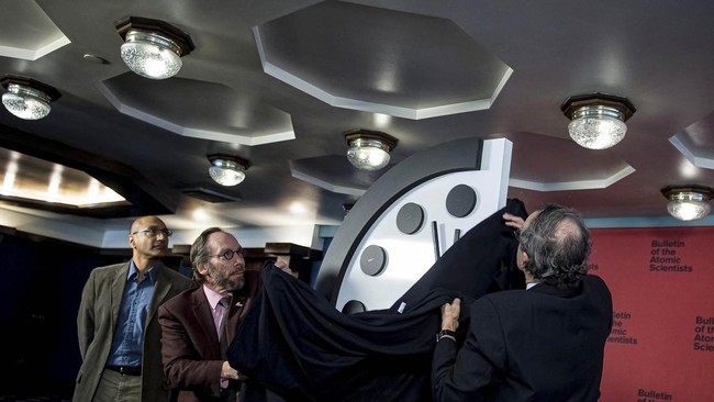 Amerika Serikat, CNN Indonesia -- Para ilmuwan atom kembali memajukan Doomsday Clock atau Jam Kiamat, 85 detik menuju tengah malam, titik terdekat dengan tengah malam sepanjang sejarah.